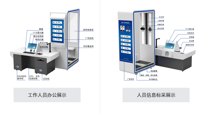 人員信息標(biāo)采平臺(tái)是一款高度集成、高度智能化的人員信息采集軟硬件一體設(shè)備,滿足公安、司法等辦案機(jī)關(guān)對(duì)違法犯罪人員的基本信息、人像(特征相)、二代身份證、指掌紋、身高體重足長(zhǎng)、虹膜、聲紋、足跡、DNA、手機(jī)、隨身物品、銀行卡等采集要求,與警綜平臺(tái)等相關(guān)業(yè)務(wù)平臺(tái)關(guān)聯(lián)、對(duì)比、分析,實(shí)現(xiàn)采集單元一體化、數(shù)據(jù)采集業(yè)務(wù)流程化、數(shù)據(jù)質(zhì)量規(guī)范化。